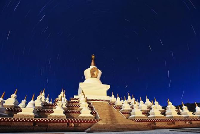 這一天我們的車將行駛在素有“世界屋脊”“世界第三極”的青藏高原。早餐后欣賞“光與影的世界”【新都橋】,翻越【高爾寺山】(海拔4412米),若天氣晴朗,則有幸在山頂一睹蜀山之王【貢嘎山的風(fēng)采】(四川最高峰,海拔7556米,高高的山峰聳立天際,非常的壯觀)抵雅礱江畔康巴小城【雅江】后穿越【剪子彎山隧道】(長228米)接著翻越【卡子拉山】(海拔4718米),來到有著“高原明珠”“世界高城”之稱的【理塘】途中自費(fèi)參加茶馬古道生活體驗(yàn)營或天域牧場(自助石板燒烤、穿藏裝、騎馬)觀【毛埡大草原】風(fēng)光,給你一種想策馬奔騰的感覺,感受了遼闊的大草原,我們將翻越形是兔子的【兔兒山】,遠(yuǎn)觀就像兔子的耳朵特別的可愛。之后翻越最為壯觀的、青藏高原最大的古冰體遺址稻城古冰帽【海子山自然保護(hù)區(qū)】(海拔4500米)。(海子山是由1145個(gè)大小海子和嶙峋怪石組成。猶如上帝失手撒下的一千顆鉆石一般閃爍在山間,其規(guī)模密度為中國乃至世界規(guī)模最大最典型的古冰帽遺跡,精妙絕倫的天然巖畫—鹿子圖騰)。后前往桑堆高原補(bǔ)氧站(高原旅游知識(shí)宣傳點(diǎn))時(shí)間10-20分鐘、之后欣賞沿途迷人風(fēng)光、世外桃源般藏式村寨,觀稻城尊勝白塔后,抵達(dá)最后的香巴拉【稻城】。